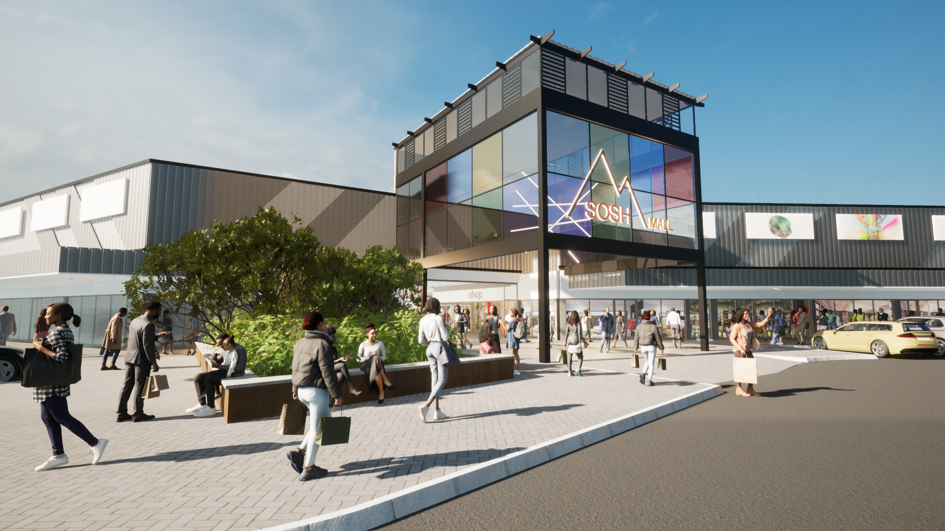 Soshunguve will be seeing a new addition to the vibrant fabric of the settlement soon. Sosh mall aims to incorporate the energetic spirit of the surroundings by using bright colours, curved walkways with special attention to the pedestrian and public transport system.